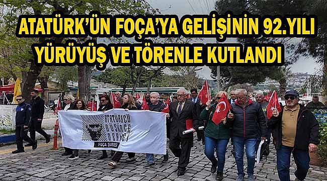 Cumhuriyetimizin kurucusu, Ulu Önder Gazi Mustafa Kemal Atatürk’ün 9 Nisan 1934 tarihinde İzmir’in Foça İlçesi’ne gelişinin yıldönümü, yürüyüş ve törenle kutlandı.