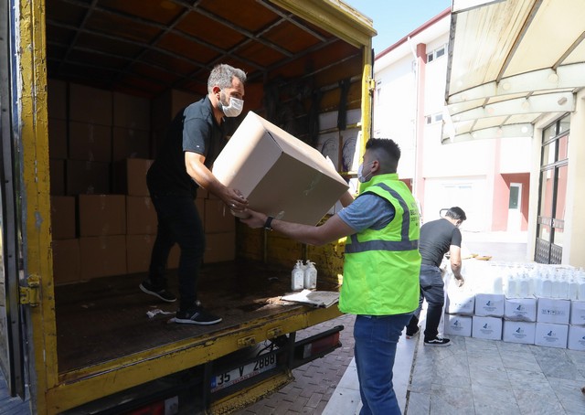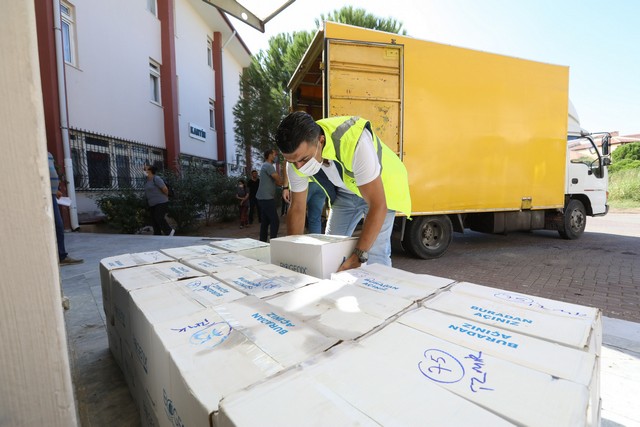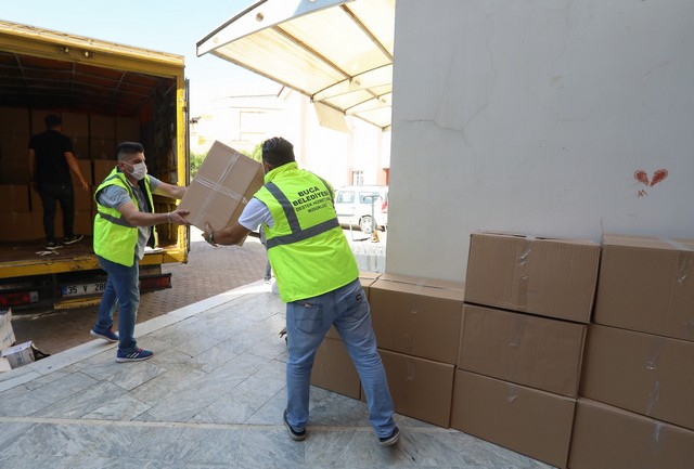 Buca Belediyesi'nden okullara 100 tonluk hijyen malzemesi