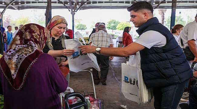 Buca Belediyesi Kültür ve Sosyal İşler Müdürlüğü, çevre kirliliğine karşı duyarlılığı artırmak ve sıfır atık anlayışına dikkat çekebilmek için Buca’da yer alan pazar yerlerinde binlerce uzun ömürlü çanta dağıtımı gerçekleştirdi.