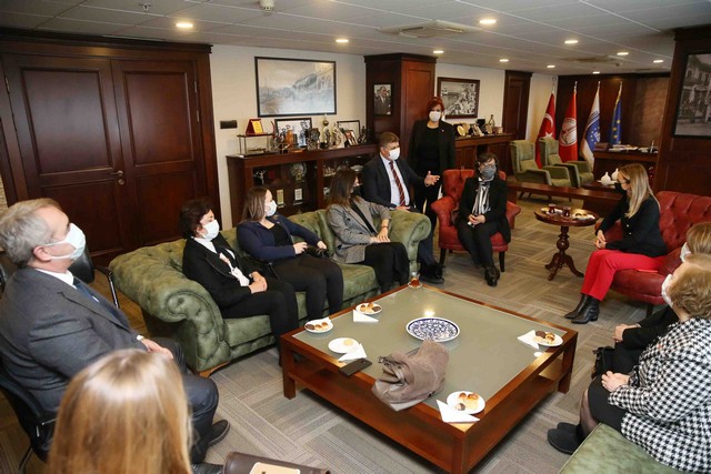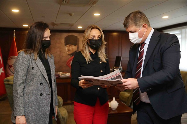 Genel Başkan Nazlıaka, MYK Üyeleri ve İl Başkanı Uçar, İlçe başkanı Koç ile birlikte Karşıyaka Belediyesi’ni ziyaret etti. Belediye Başkanı Dr. Cemil Tugay ile başkanlık makamında bir araya gelerek gündem değerlendirmesinde bulundu. Ziyaretleri sebebiyle genel başkana teşekkür eden Başkan Tugay şu ifadeleri kullandı: “Böyle anlamlı bir günde sizi burada görmek bizim için büyük bir mutluluk. Partimizin bugün Genel Merkezi, Genel başkanımız, MYK üyelerimiz, parti meclisimiz ve onlarla birlikte yapılanan Kadın ve Gençlik Kolları’nın oluşturduğu yapının gerçekten halkçı, partimizin ilkelerine ve misyonuna yakışır duruşlu bir yönetim olduğuna yürekten inanıyorum. Böyle bir partinin belediye başkanlığı görevini üstlenmiş olmak benim için bir şans. Pandemi ekonomik ve sosyal açıdan ağır sorunlar yaşadığımız bir dönem ama bununla mücadele etmek bizim gibi insanların başarabileceği bir şeydir. Ülkemizin Cumhuriyet Halk Partisi’ne; gerçekten ülkesini seven, dinamik, sorunları çözen kararlı insanlara, ihtiyaç duyduğu dönemde bu görevlerdeyiz. Herkese düşen görevler ve sorumluluklar var; burası bizim ülkemiz, bu insanlar bizim insanlarımız, biz bu toprağın bir parçasıyız. Geçmişimiz ve geleceğimizle, Cumhuriyet Halk Partisi’nin ilkeleri çerçevesinde kurucumuz Mustafa Kemal Atatürk’ten itibaren her şeyiyle, canını vermeye hazır olan insanlarız. Bu anlamda bana verilen onurlu görevi en doğru şekilde yerine getirmek için çabalıyorum. Yaptığımız çalışmalarda kadının varlığı büyük bir güç. Önümüzdeki dönemde bizi iktidara taşıyacak olan, kadınların bize inanması. İzmir ve Karşıyaka bu anlamda örnek kentlerden biridir. Yapacağımız çalışmalarda her zaman özverili ve yapıcı olmalıyız. Üzerimize düşen ne varsa yapmaya hazırız”