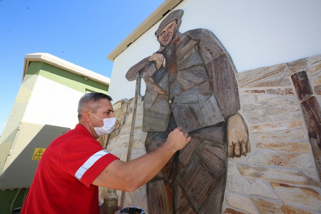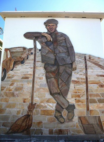 Belediyenin yeni Temizlik İşleri Müdürlüğü Şantiyesi’nin yanındaki trafo duvarına, sevenlerinin gönlünde Çöpçüler Kralı olarak yer edinen Kemal Sunal’ın kayrak taşıyla resmini yapan Gürel Gürel, “Belediye Başkanımız Halil Arda yeni şantiyemiz için bir çalışma yapmamı istedi. Bunun üzerine ben de Çöpçüler Kralı filminde temizlik işçisi olarak görev yapan Apti Şakrak karakterinin görselini yaptım. Kayrak taşından yaptığım 2,5 metre genişliğindeki 3 metre yüksekliğindeki çalışmayı 3 haftada tamamladım. Şantiyemizin yanındaki diğer trafonun duvarına ise Temizlik İşleri Müdürlüğümüzle özdeşleşen ‘Biz temiz insanlarız’ sloganını yazdım. Bu şekilde bu çalışmamız temizlik işleriyle bütünleşmiş oldu” diye konuştu.