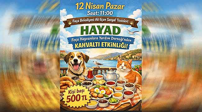 FOCALİ.COM - Foça Hayvanlara Yardım Derneği (HAYAD), 12 Nisan Pazar günü saat 11.00’de Foça Belediyesi Ali İlçan Sosyal Tesisleri’nde kahvaltı etkinliği düzenliyor.
