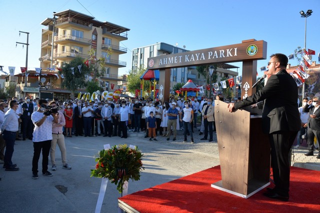 Menemen’e yeni bir park kazandırmaktan ve Ahmet Kaya adını Menemen’de yaşatmaktan dolayı mutluluk duyduğunu ifade eden Menemen Belediye Başkanı Serdar Aksoy açılışta yaptığı konuşmada, “Bugün çok anlamlı bir gün. 1 Eylül Dünya Barış Günü. Ahmet Kaya Parkı’nın bu tarihte açılmasını özellikle istedik. Bizim ihtiyacımız olan şeyler barış, demokrasi, özgürlüktür. Bunların hepsi Ahmet Kaya’nın da fikirlerinde, söylemlerinde var. Bizim jenerasyonumuz için Ahmet Kaya çok özel bir isimdir. Ahmet Kaya sevdadır, Ahmet Kaya aşktır, Ahmet Kaya isyandır. Bu parkta da Ahmet Kaya’nın o aşkını, isyanını, sevdasını hep beraber tadacağız. Ahmet Kaya adı Menemen’de dünya var olduğu müddetçe var olmaya devam edecek. Bizler onun türküleri ile büyüdük, onun türküleri ile sevdalandık. Bunun için Ahmet Kaya bizim için çok özel bir isimdir. Vatanından ayrılmak zorunda kalan Ahmet Kaya, vefatından önce konuk olduğu bir belgeselde, üşüyorum diyor, ama yorgansızlıktan, kalorifersizlikten değil, vatansızlıktan üşüyorum. Düşünceleri yüzünden vatanından koparılan aydınlarımız, sanatçılarımızdan sadece bir tanesidir Ahmet Kaya. Ama söküp atamadılar sevgisini kalbimizden. Ahmet Kaya şarkılarıyla yüreklerde yaşıyor, yaşamaya da devam edecek” dedi.