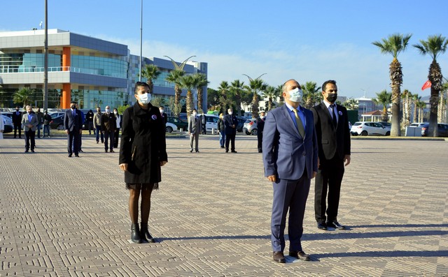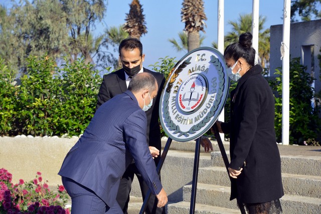 Cumhuriyet Meydanı’nda Aliağa İlçe Milli Eğitim Müdürü Dr. Erdoğan Akyüz’ün Atatürk Anıtı’na çelenk sunumuyla başlayan törende saygı duruşunda bulunulmasının ardından İstiklal Marşı okundu.
