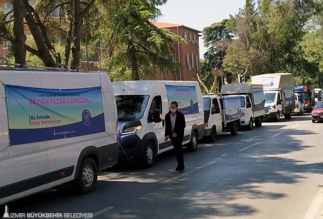 Koronavirüs salgını boyunca yurttaşların taze sebze ve meyve ihtiyacını karşılamak için hayata geçirilen Seyyar Pazar projesi Karşıyaka ve Bornova’da da başladı.